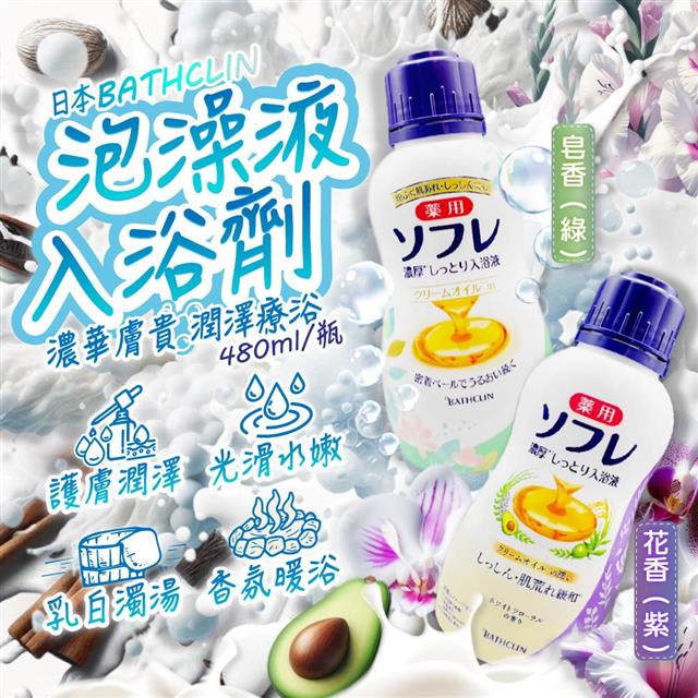 日本BATHCLIN巴斯克林-舒芙蕾濃厚白濁湯潤膚泡澡液入浴劑480ml/瓶(滋潤乾肌乳霜香氛沐浴油/草本萃取身體洗沐精華液/芳療SPA保養入浴液)