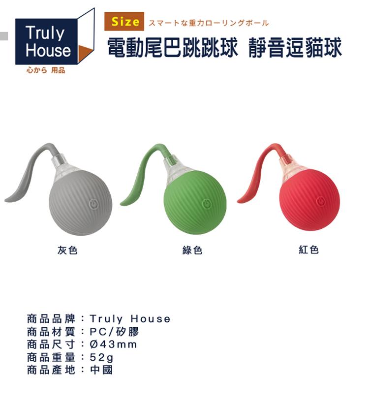 【Truly House】電動尾巴跳跳球 靜音逗貓球 逗貓 寵物(三色任選)