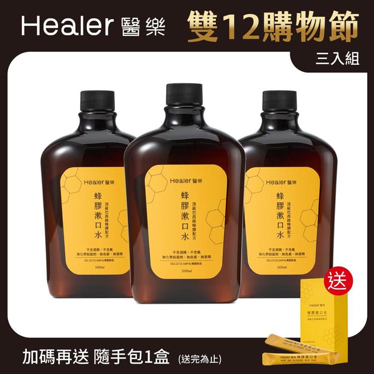 【Healer醫樂】頂級巴西綠蜂膠漱口水500ml-3瓶(無酒精/無香精/無色素)