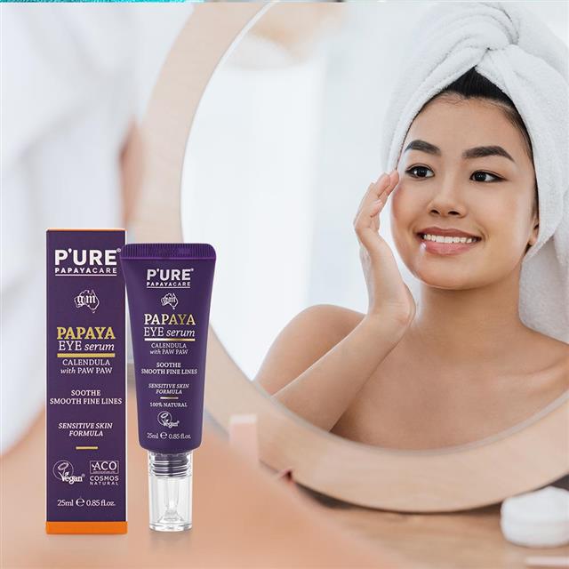 •P'URE 木瓜眼部精華液是使用天然植物萃取材質,素食可用。