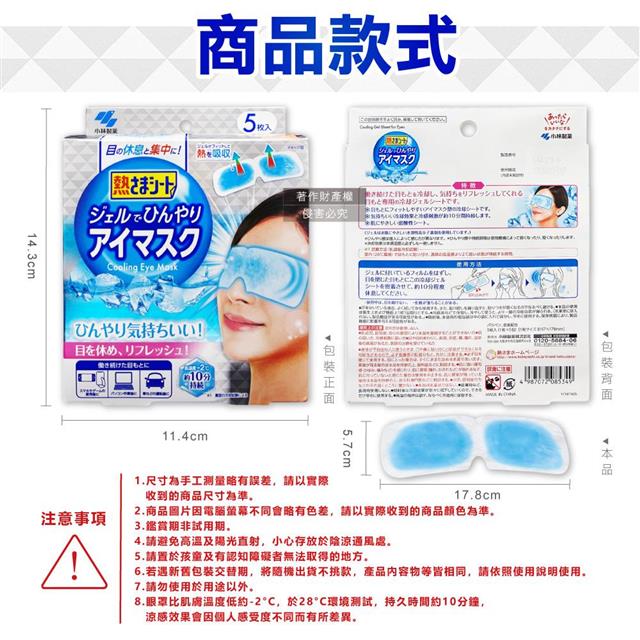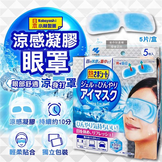 日本Kobayashi小林製藥-1次性黏貼式眼部休息涼感凝膠眼罩5片/銀盒(便攜拋棄式獨立包/持續約10分鐘冰涼感眼膜/親膚弱酸性眼周冷敷貼片)