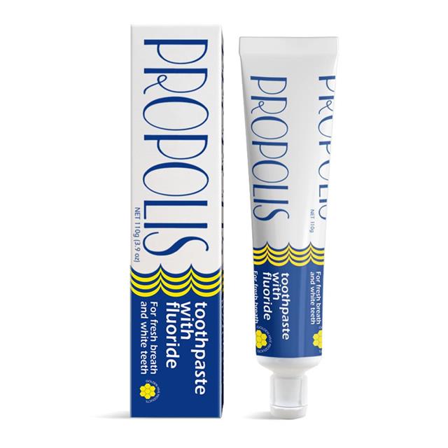 有別於許多蜂膠牙膏,此款牙膏有氟化物,清新口味,潔白牙齒,