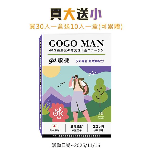 歐葵樂 【go敏捷】PCTII®非變性二型膠原+蛋白聚醣 關鍵修復膠囊 (30粒/盒)-11/16前買大送小