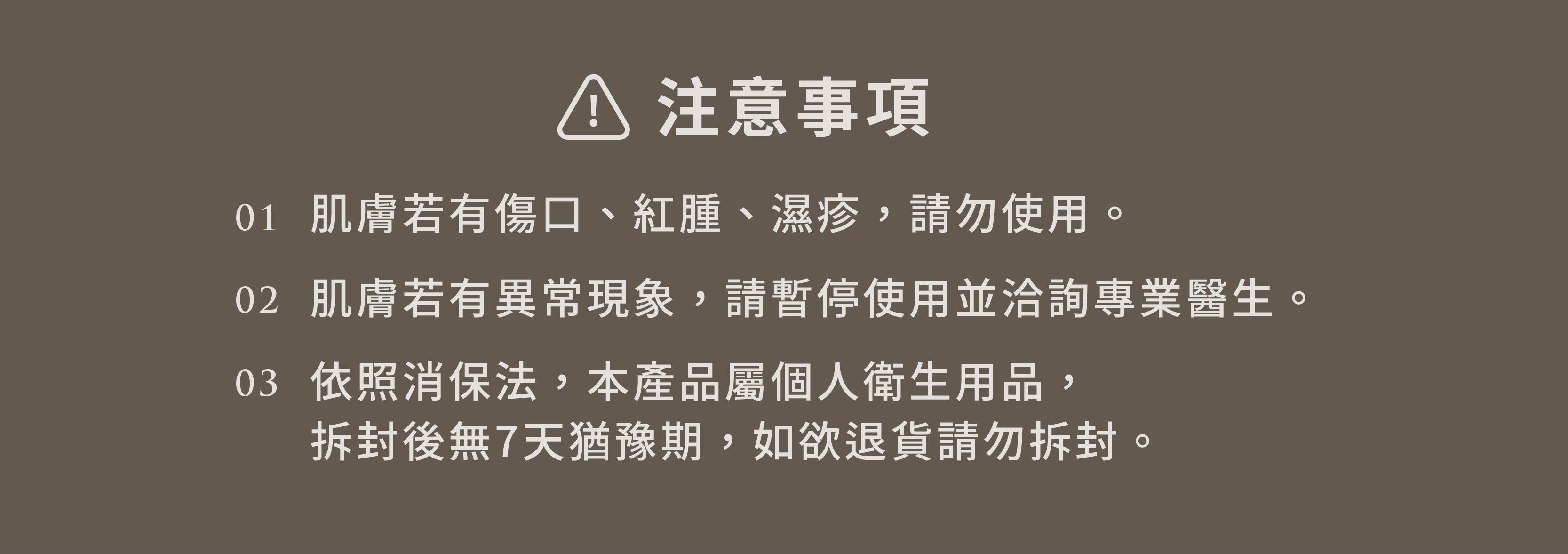 ★肌膚若有傷口、紅腫、濕疹,請勿使用。