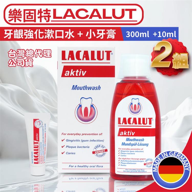德國LACALUT樂固特牙齦強化漱口水300ML-2瓶組(贈2條牙膏10ML)