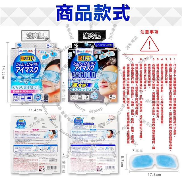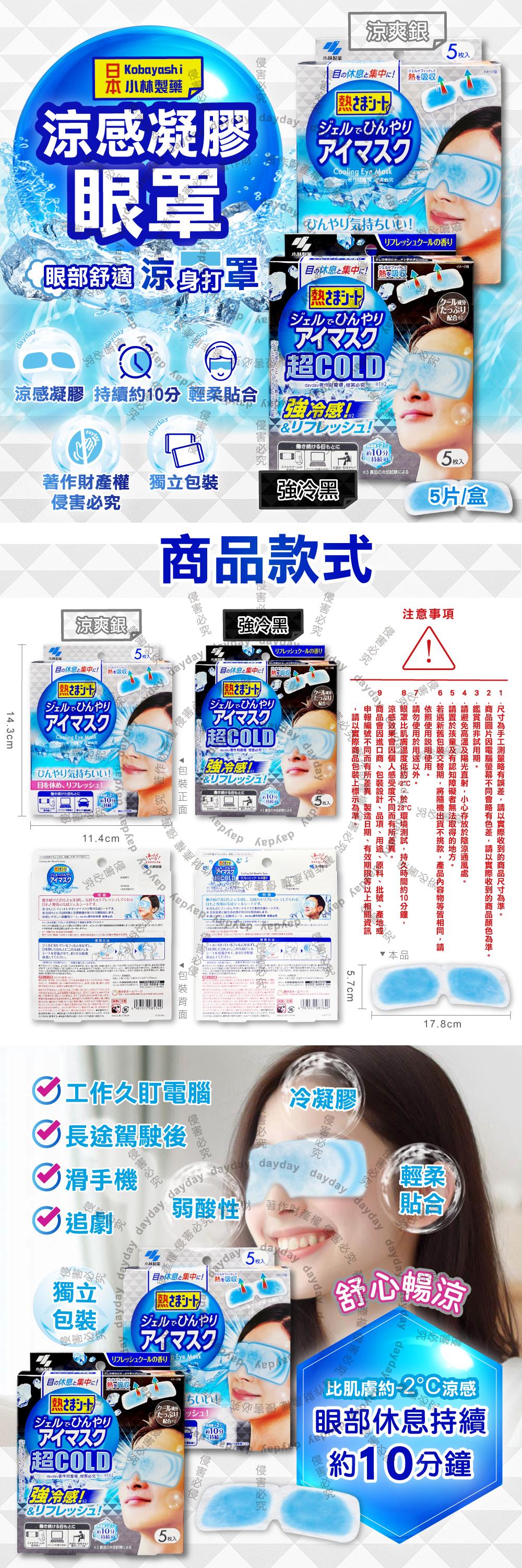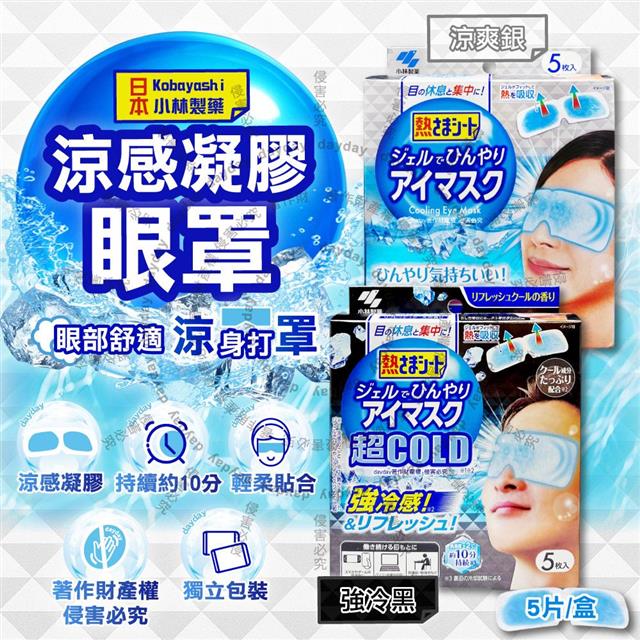 日本Kobayashi小林製藥-1次性黏貼式眼部休息涼感凝膠眼罩5片/1盒(便攜拋棄式獨立包/持續約10分鐘冰涼感眼膜/親膚弱酸性眼周冷敷貼片)