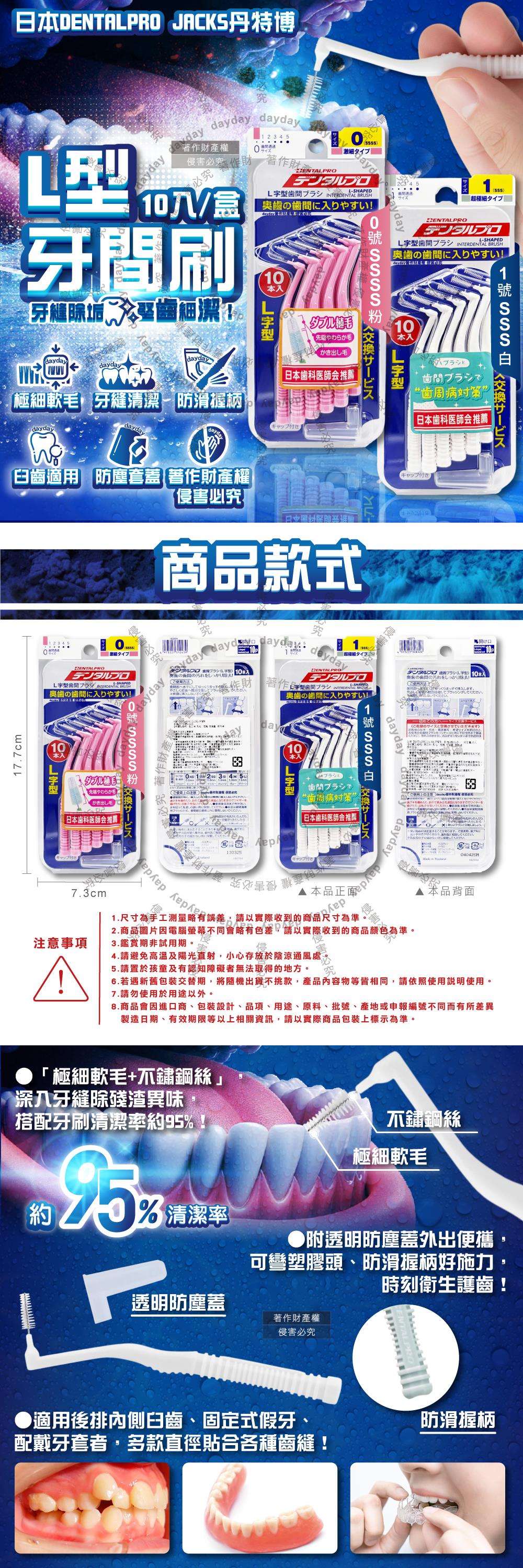 日本DENTALPRO JACKS丹特博-L型潔齒縫軟毛牙間刷10入/1盒(附便攜防塵蓋/口腔清潔牙籤棒/極細護齦齒間刷/內側臼齒縫牙線棒/牙縫除殘渣異味)