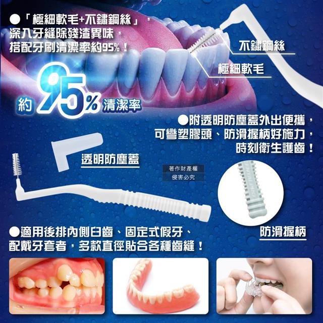 ●「極細軟毛+不鏽鋼絲」,深入牙縫除殘渣異味,搭配牙刷清潔率約95%!