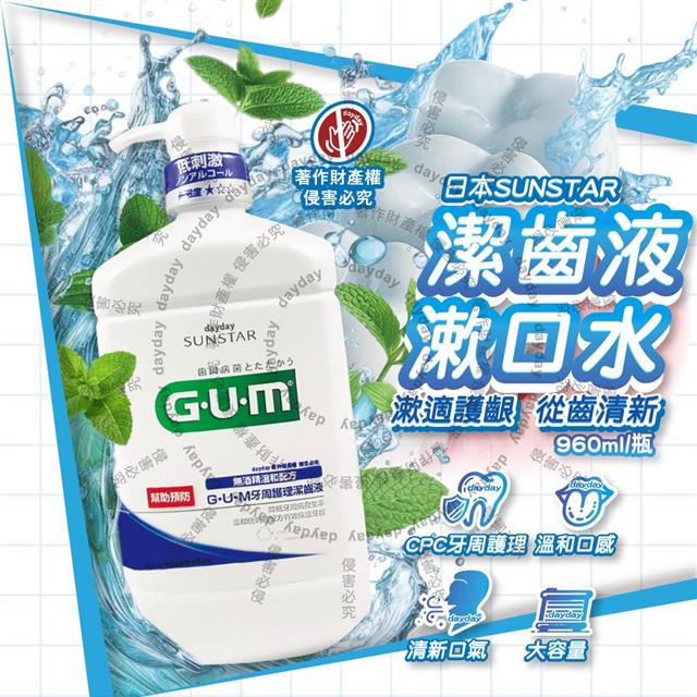 日本SUNSTAR三詩達-GUM牙周護理潔齒液漱口水960ml/按壓瓶-草本薄荷(CPC抑制牙漬溫和口感護齒齦/持久清新防口腔異味/大容量家庭用)