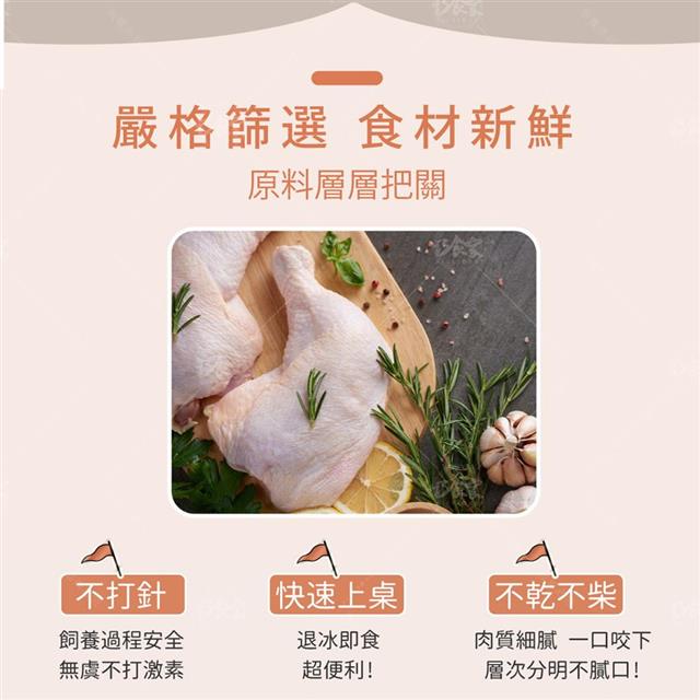 嚴選高品質台灣雞肉,肉質鮮嫩、緊實且富有彈性,搭配獨家開發特製調料,香氣十足,美味順口!退冰後即可食用,方便又省時!
