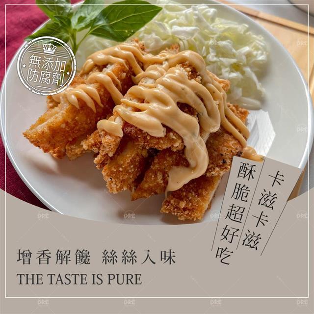【成分】去骨去皮雞胸肉、蔗糖、鹽、樹薯粉、麵包粉、豬血將蛋白、大豆蛋白、白胡椒粉、黑胡椒、辣椒粉