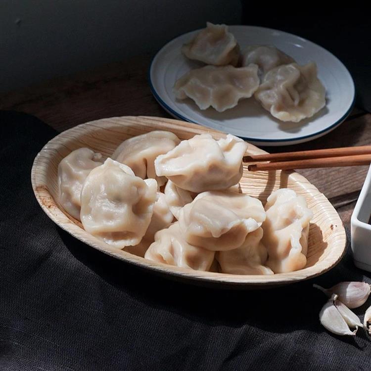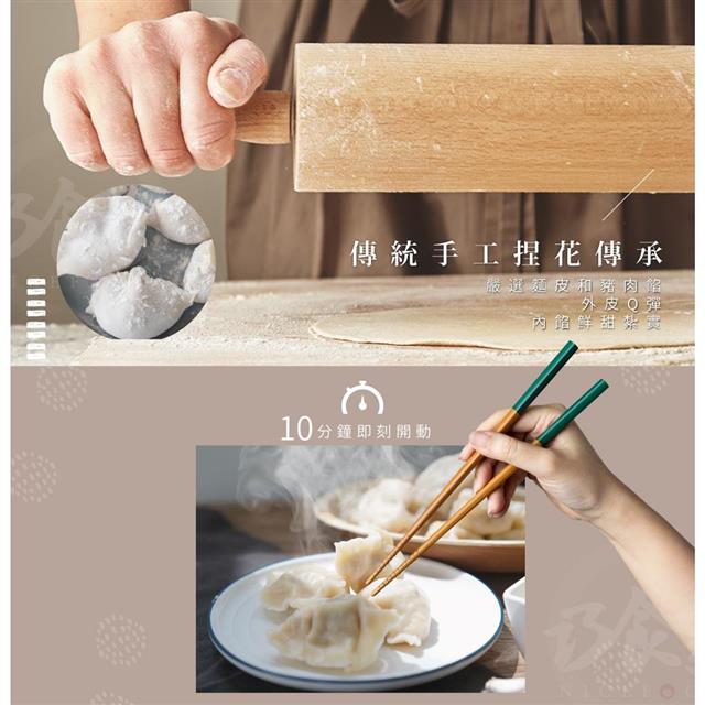 傳統手工水餃,麵皮水潤有嚼勁,豬肉內餡鮮甜,使用優質豬後腿肉與青脆高麗菜手工捏製。