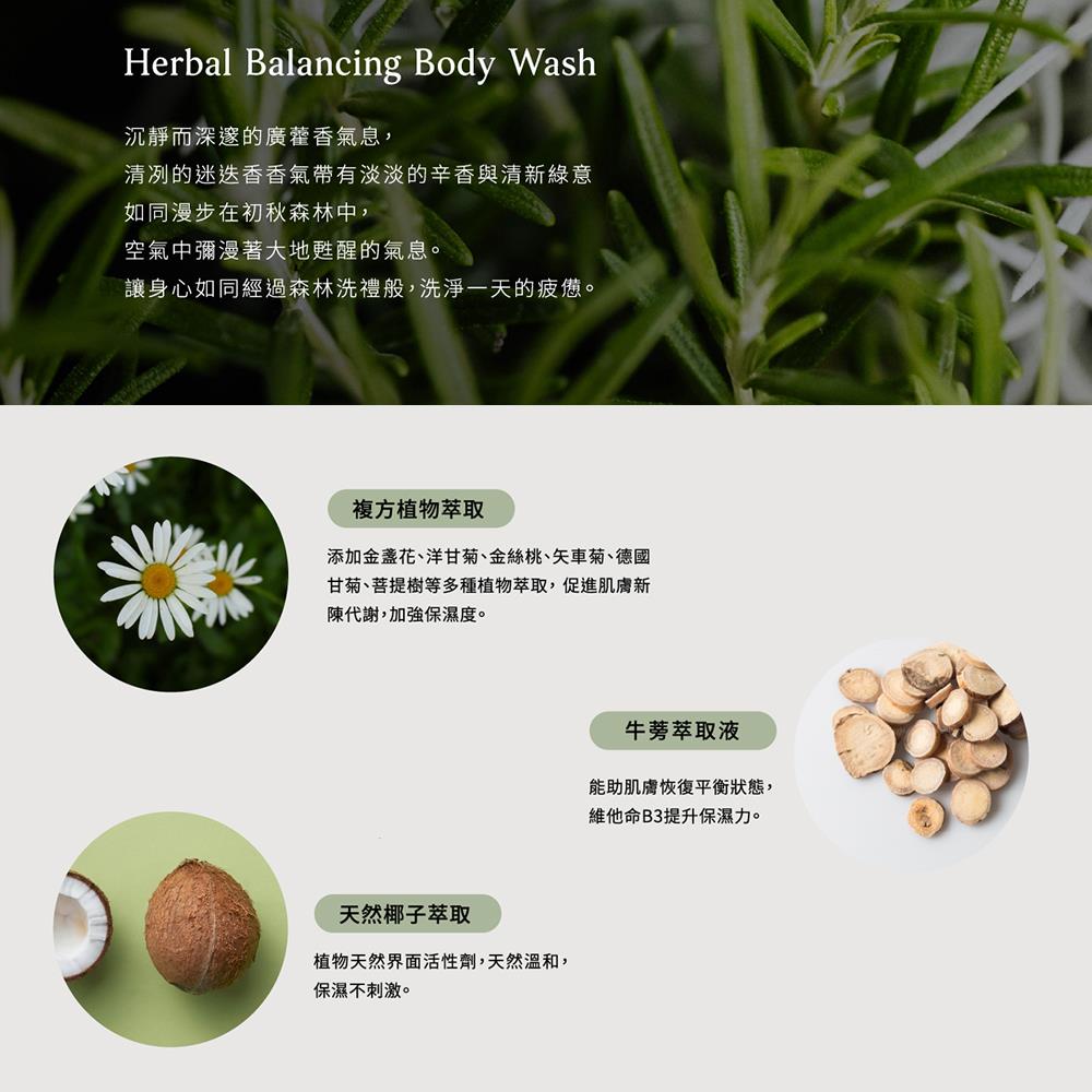 6種植萃配方呵護肌膚洗完不乾澀,天然草本植物廣藿香與迷迭香氣!