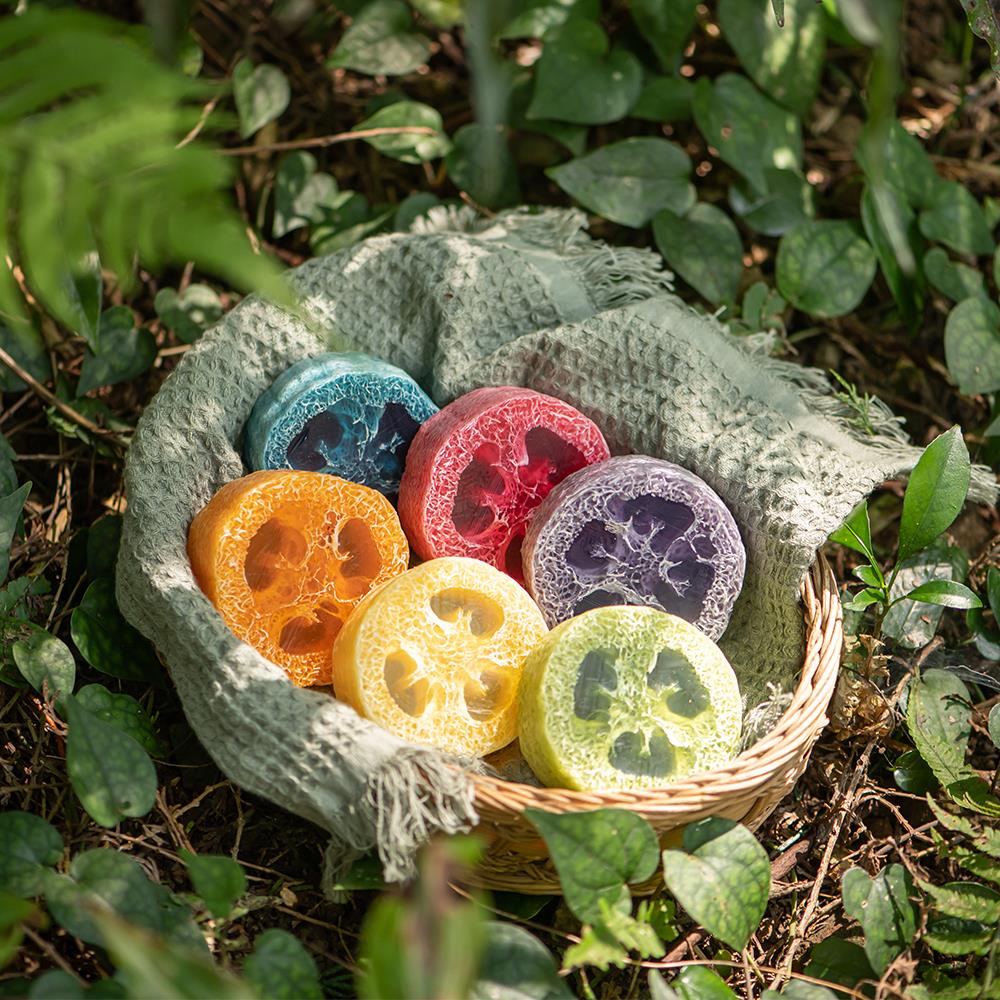 使用天然的絲瓜絡融入肥皂製成薰衣草森林的絲瓜皂~