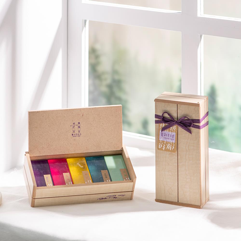 【舞彩手工皂禮盒】五種香味讓心情飛舞 木頭材質禮盒