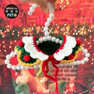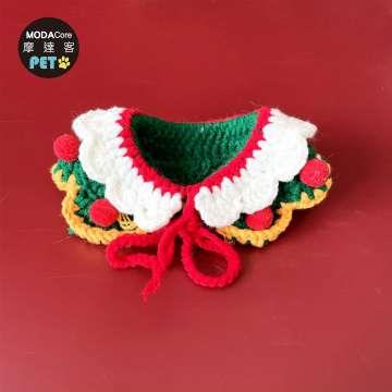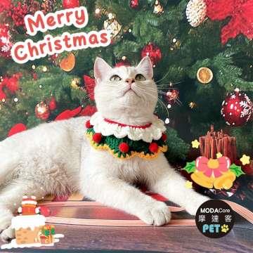 摩達客寵物-可愛萌寵聖誕裝扮_紅色球球雙層白綠黃編織領巾-兩種尺寸-耶誕派對裝扮_中小型貓狗適用