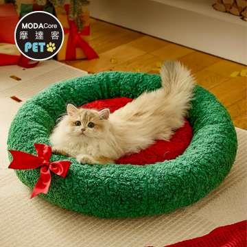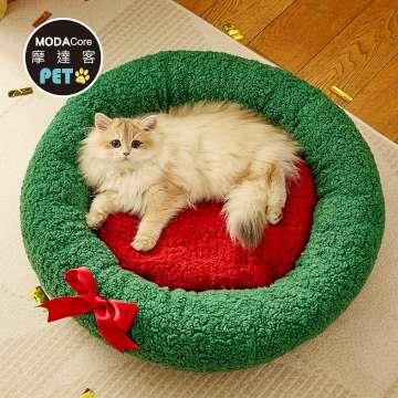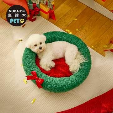 摩達客寵物-綠紅聖誕花圈保暖造型氛圍感貓窩狗窩-L號-保暖加厚氛圍感寵物墊