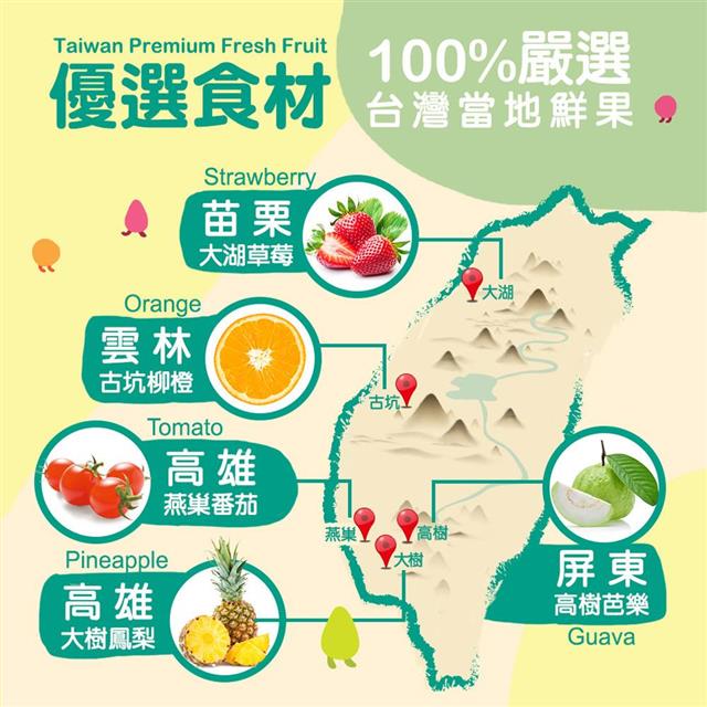 • 本產品嚴選台灣在地水果,為保持最佳原始風味,不添加任何化學成分。
