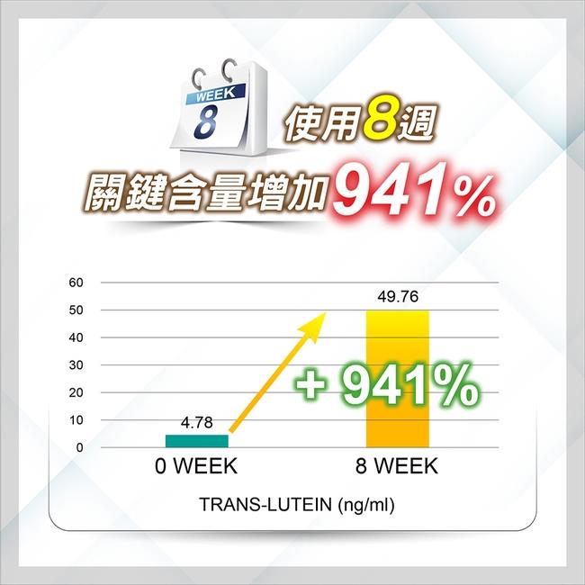 營養標示:(每一份量2粒本包裝含30份)維生素A 20微克RE (66.8 IU),維生素C 9.76毫克,維生素E 1.34毫克α-TE (2 IU),維生素B1 1.42毫克,維生素B2 2毫克,維生素B6 1.65毫克,鋅 2.6毫克,葉黃素 20毫克