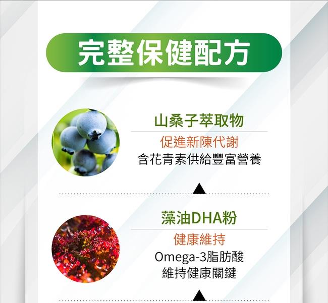 成    份:乳糖、葡萄糖(含葡萄糖、麥芽糊精)、維生素C、濃縮乳清蛋白(含神經鞘磷脂)、水蜜桃果汁粉(含水蜜桃濃縮汁、麥芽糊精、檸檬酸、香料、β-胡蘿蔔素)、金盞花萃取物[含葉黃素、玉米黃素(含消旋玉米黃素)][含金盞花萃取物、糊精、蔗糖、阿拉伯膠、維生素E(抗氧化劑)、辣椒萃取物]、蔗糖、硬脂酸鎂、二氧化矽、維生素E(含維生素E、葡萄糖漿、辛烯基丁二酸鈉澱粉、二氧化矽)、小米草萃取物、山桑子萃取物(含山桑子萃取物、麥芽糊精)、黑醋栗萃取物(含黑醋栗萃取物、麥芽糊精)、維生素A[含葡萄糖漿、阿拉伯膠、玉米澱粉、維生素A醋酸酯、維生素E(抗氧化劑)]、香料(含丙二醇、酒精、水、香2年(係指在未開封狀態且正常條件下之保存)料)、蔗糖素(甜味劑)、DHA藻油粉[含乾燥葡萄糖漿、DHA藻油、辛烯基丁二酸鈉澱粉、D-甘露醇、葵花油、抗壞血酸鈉、脂肪酸甘油酯、多磷酸鈉、磷酸鈣、香料、混合濃縮生育醇(抗氧化劑)、卵磷脂、L-抗壞血酸棕櫚酸酯(抗氧化劑)]。