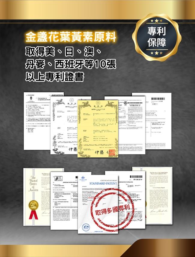 其他成份:濃縮乳清蛋白(含神經鞘磷脂) 100毫克,金盞花萃取物【葉黃素、玉米黃素(含消旋玉米黃素)】 75毫克