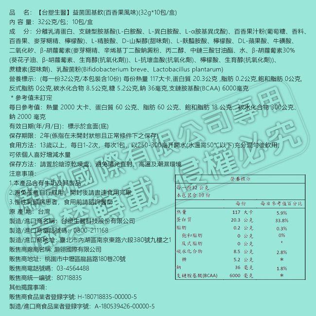 品 名:【台塑生醫】益菌固基飲(百香果風味)(32g*10包/盒)