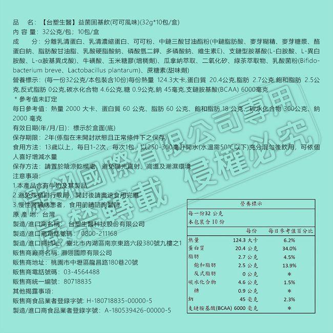 品 名:【台塑生醫】益菌固基飲(可可風味)(32g*10包/盒)