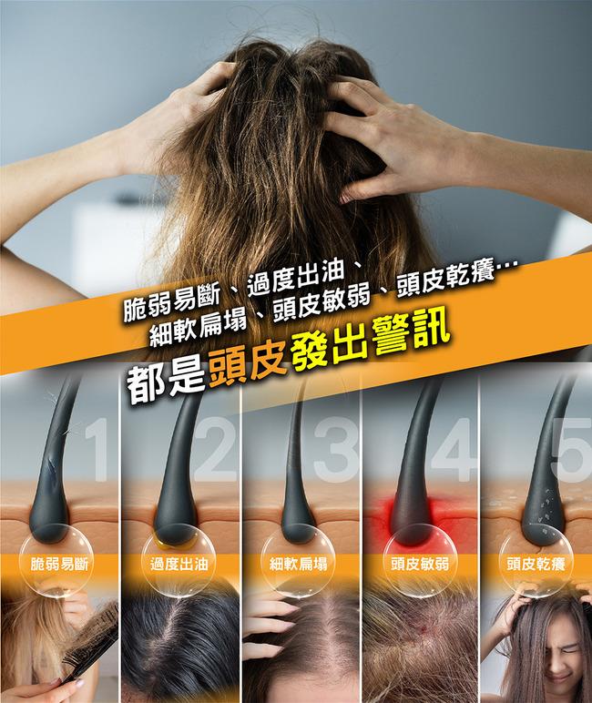 3.為完善毛根潔淨,洗感略為乾澀,長髮使用後,建議搭配使用潤絲產品,提升髮絲柔順度。