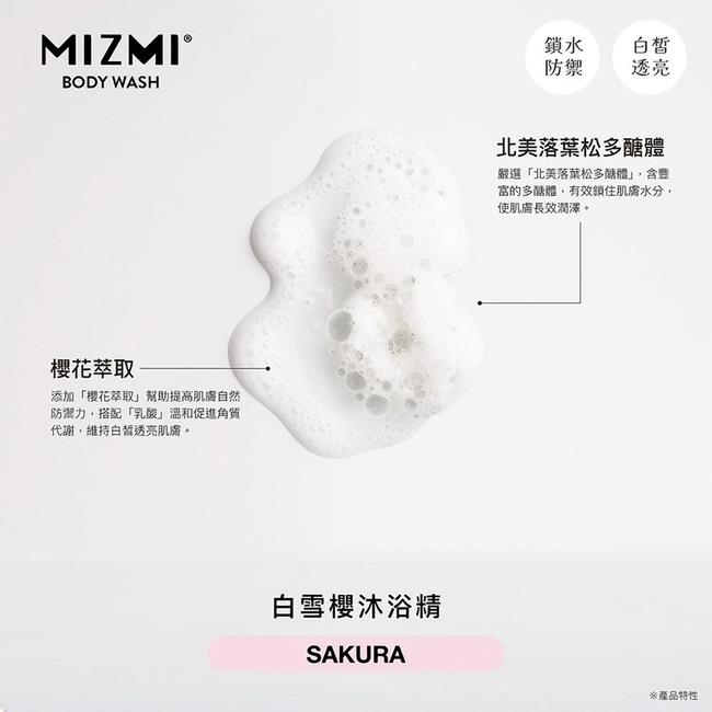 商品規格:MIZMI白雪櫻沐浴精480ml