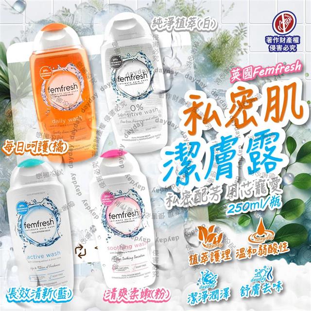 英國Femfresh芳芯-弱酸性植萃複方溫和潤澤護理私密肌潔膚露250ml/1瓶(pH值平衡女性保養護潔露/運動後生理期淨味沐浴乳/無皂鹼香氛潔浴凝膠)