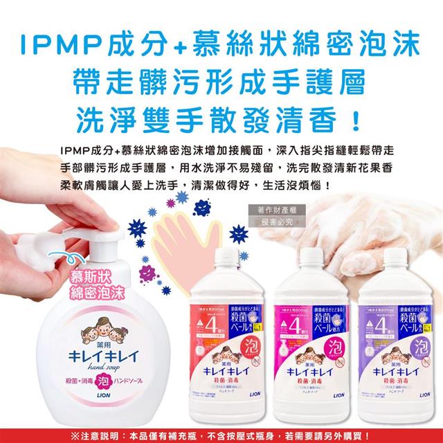 IPMP成分+慕絲狀綿密泡沫,帶走髒污形成手護層,洗淨雙手散發清香!