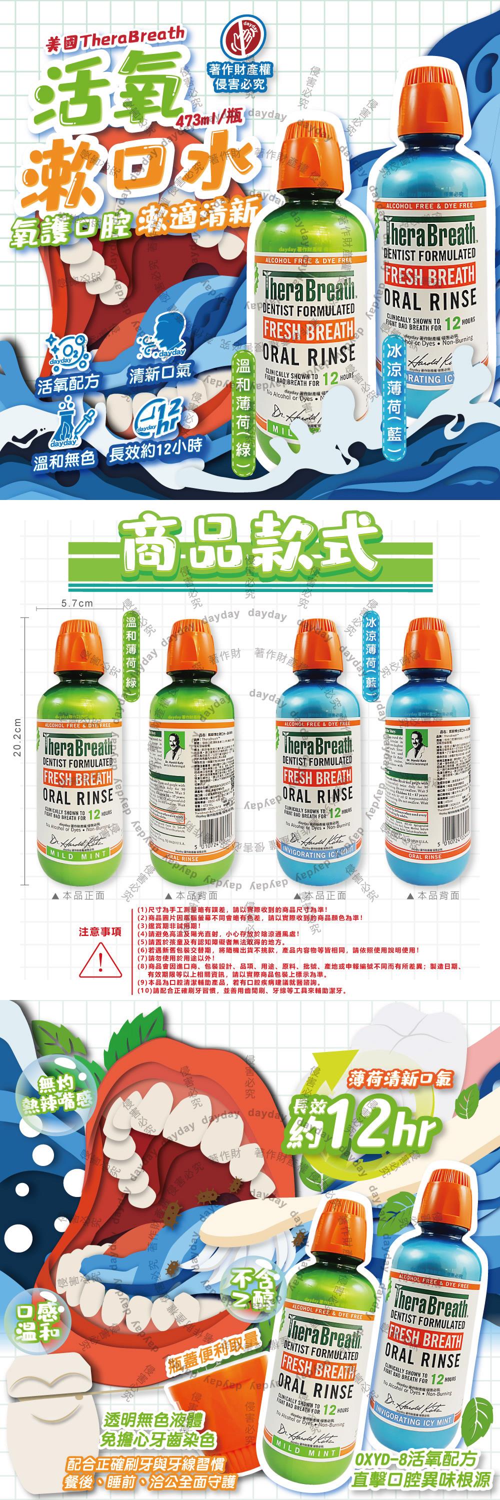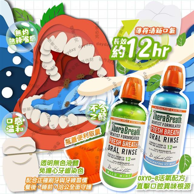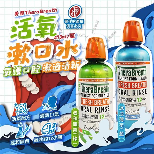 美國TheraBreath凱斯博士-活氧配方持久清新防口腔異味漱口水473ml/瓶(約12HR長效淨味潔口液/口感溫和無色防染潔齒水/薄荷護理終結壞口氣)