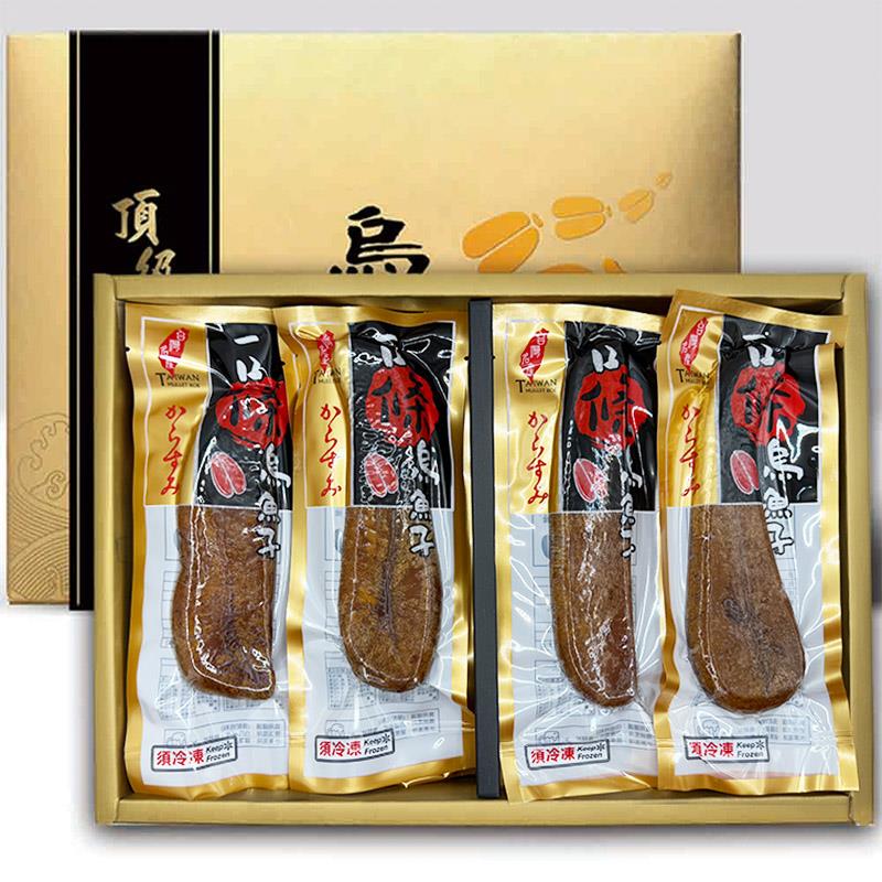 商品品名:晶鱻烏金 燒烤二兩一口條烏魚子X4 金賞禮盒+提袋