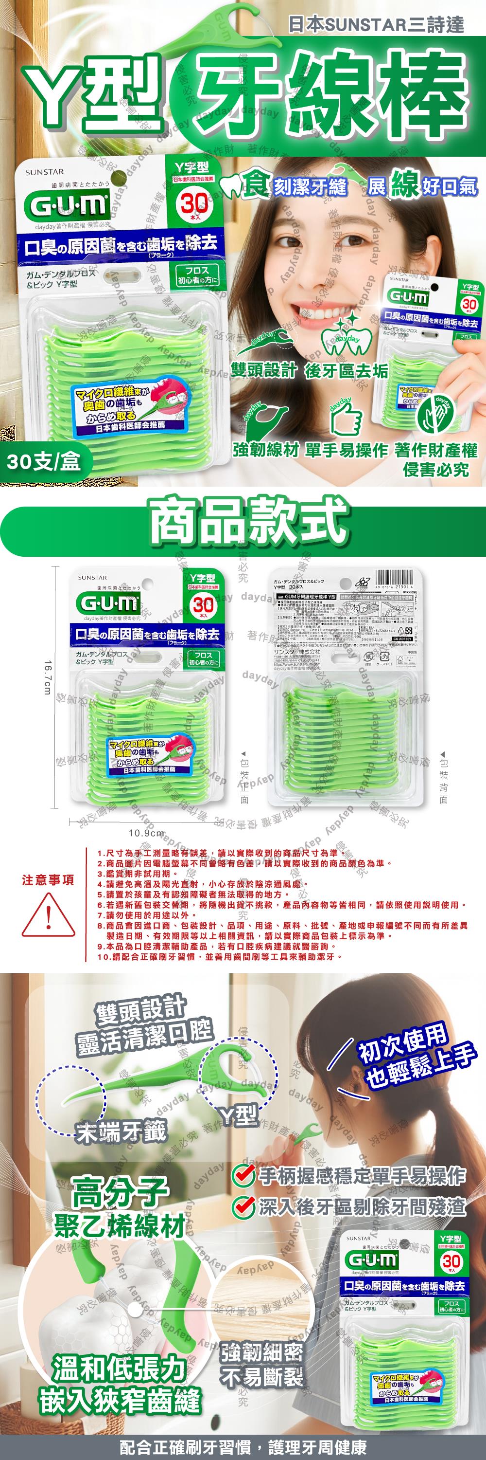 日本SUNSTAR三詩達-GUM後牙區齒縫去垢牙周護理Y型牙線棒30支/盒(後排臼齒除殘渣潔牙線/牙籤雙功能清潔棒組合包/飯後口腔保健剔牙工具)
