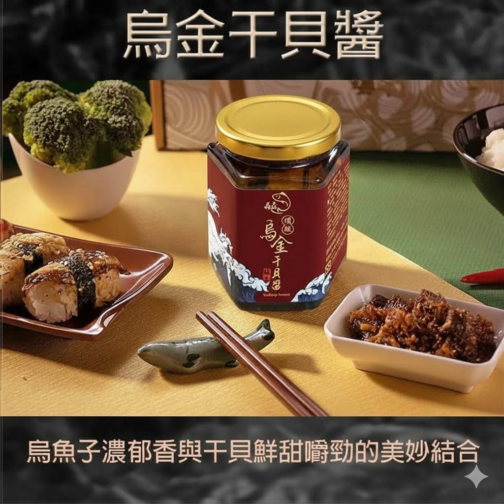 烏金 一口烏魚子150G+烏金干貝醬160g一瓶 金賞禮盒+提袋