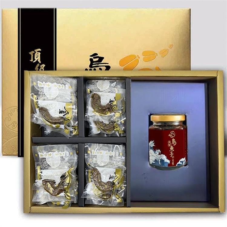 晶鱻烏金 炭烤烏魚腱150G+烏金干貝醬160g一瓶 金賞禮盒+提袋