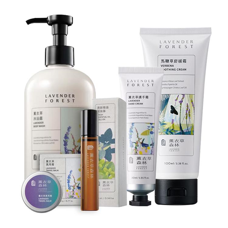 .商品內容:薰衣草沐浴露350mlx1、薰衣草護手霜30mlx1、薰衣草萬用膏20gx1、清新精油滾珠棒10mlx1、馬鞭草舒緩霜100mlx1