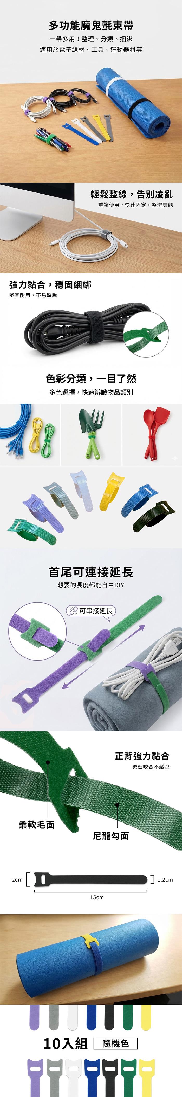【Timo】多功能魔鬼氈束帶 線材整理分類(隨機色)