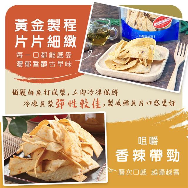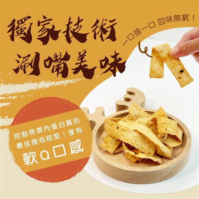 來自高雄梓官新鮮魚肉製作,越嚼越香的片片口感,品嚐鱈魚特有香氣
