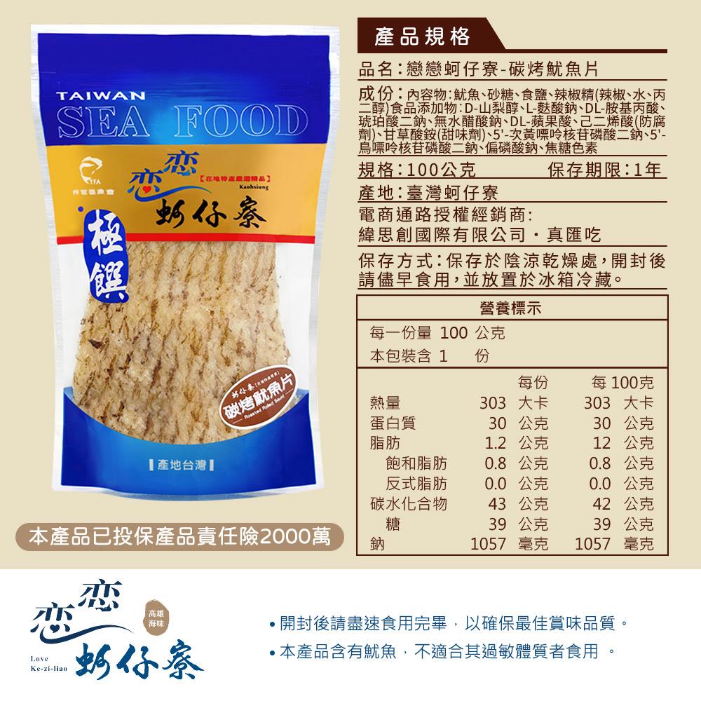【戀戀蚵仔寮】碳烤魷魚片 (100g/包) 2入組