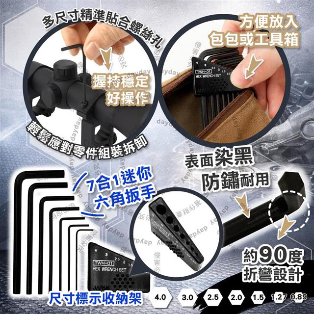 ●7合1迷你六角扳手組,多尺寸精準貼合螺絲孔,輕鬆應對零件組裝拆卸!