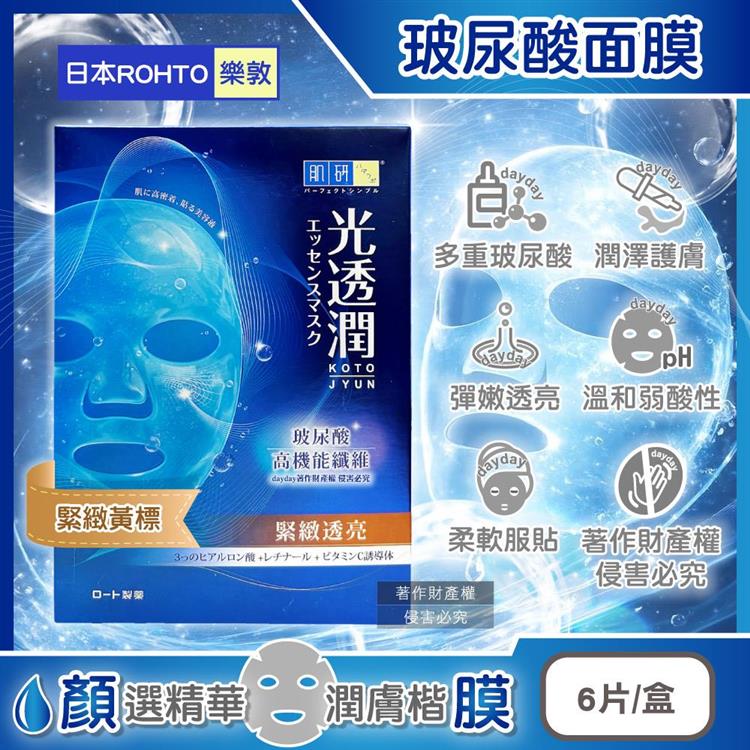 日本ROHTO樂敦-HADALABO肌研光透潤玻尿酸纖維面膜6片/藍盒-緊緻黃標(潤澤修護精華液敷臉膜/弱酸性溫和護膚美容液/睡前臉部片狀保養品)