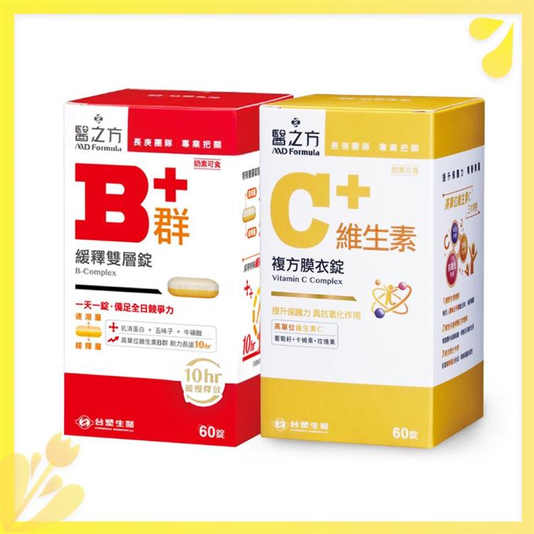 【超能 B+C組】緩釋B群雙層錠(60錠/瓶)+維生素C複方膜衣錠(60錠/瓶) 台塑生醫