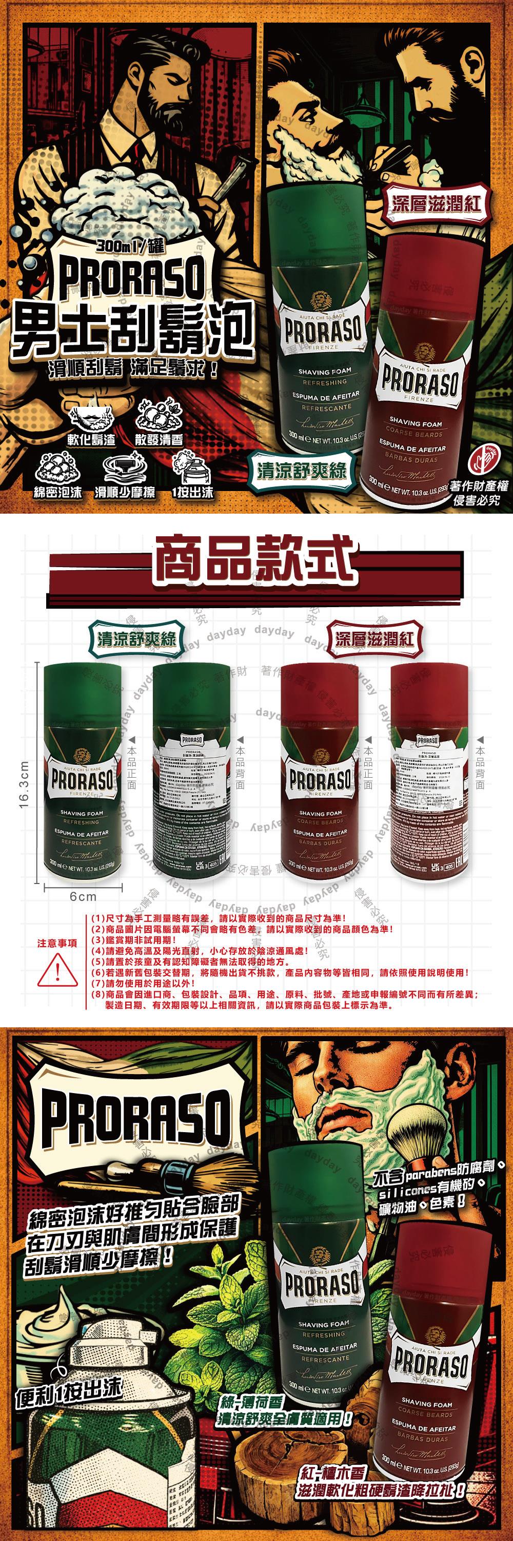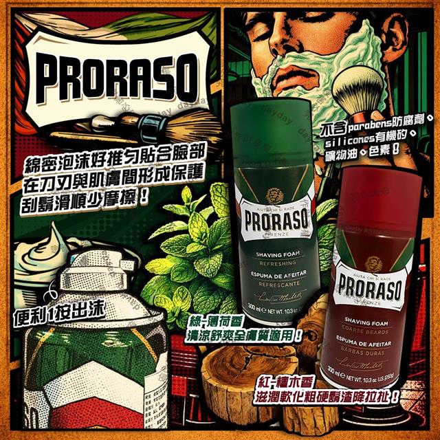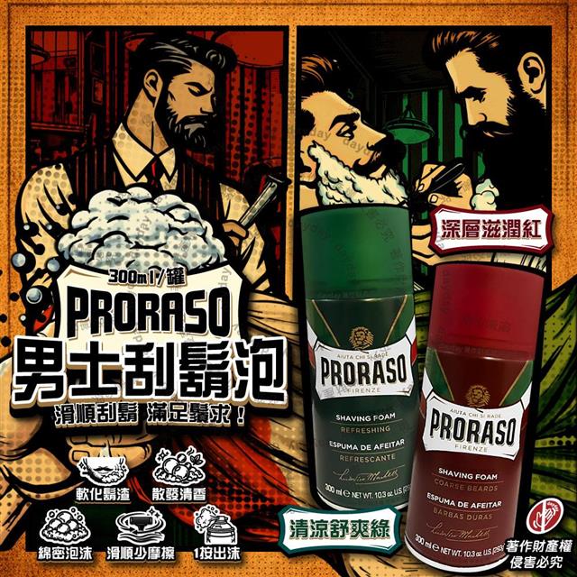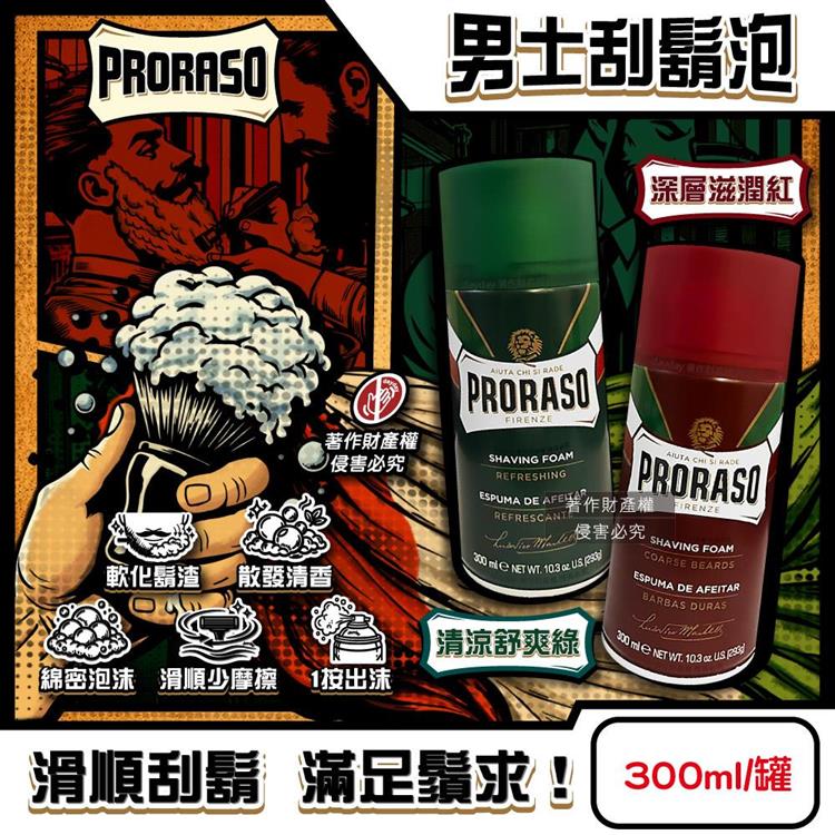 義大利PRORASO-男士專用軟化鬍渣滑順修容綿密芳香刮鬍泡300ml/1罐(男性舒適潔顏修鬍乳/鬢角美型剃鬚膏/鬍鬚護理收斂泡沫/臉部刮鬍保養用品)