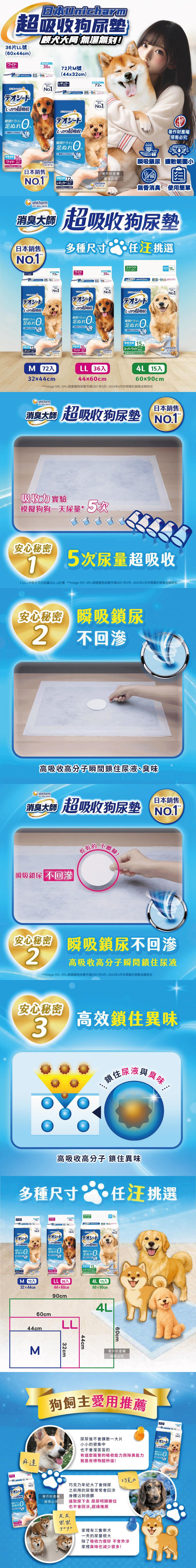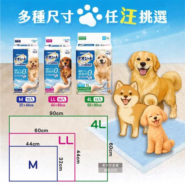 ●完整吸收約3~5次尿量,M號小型犬、LL號中型犬適用,毛孩舒適如廁!