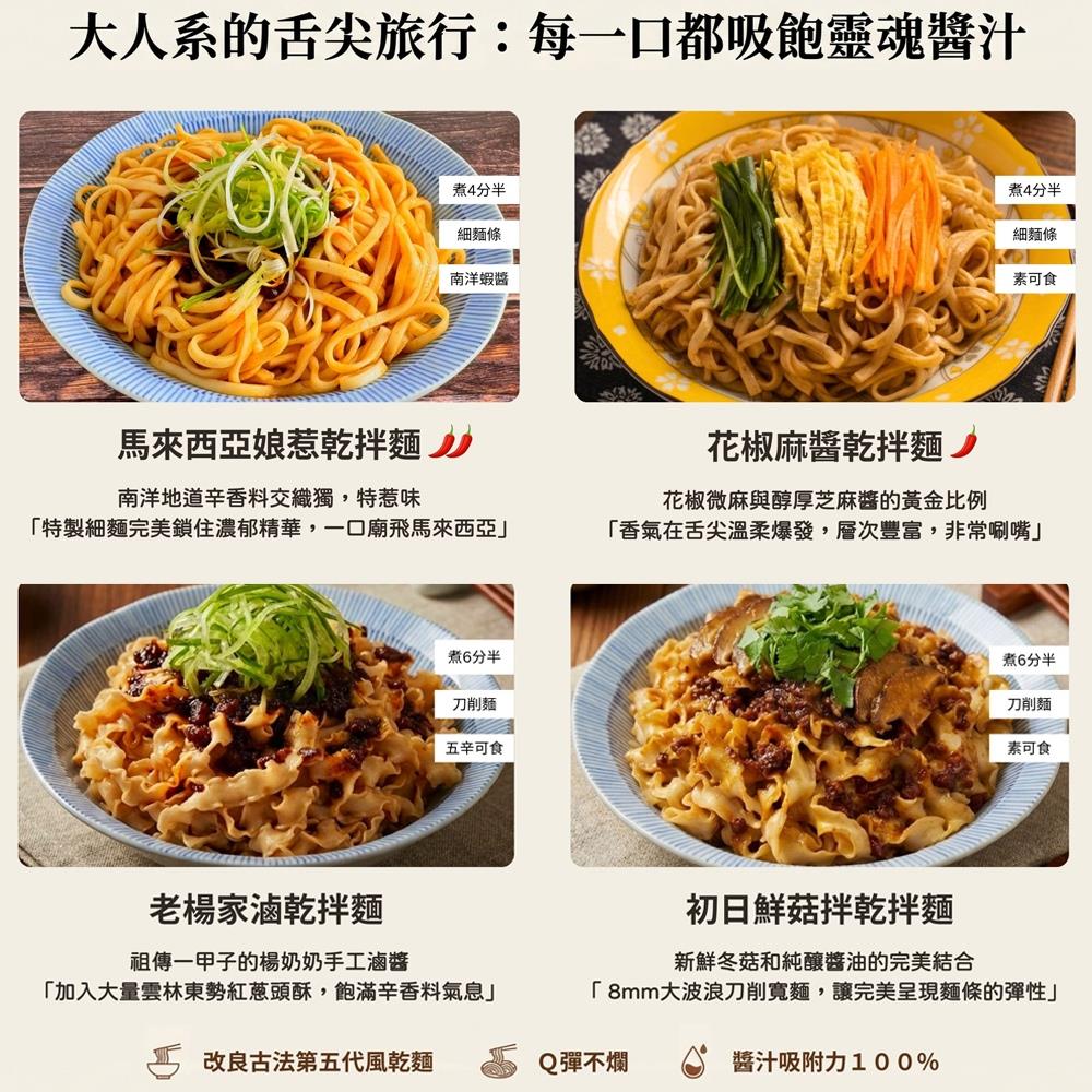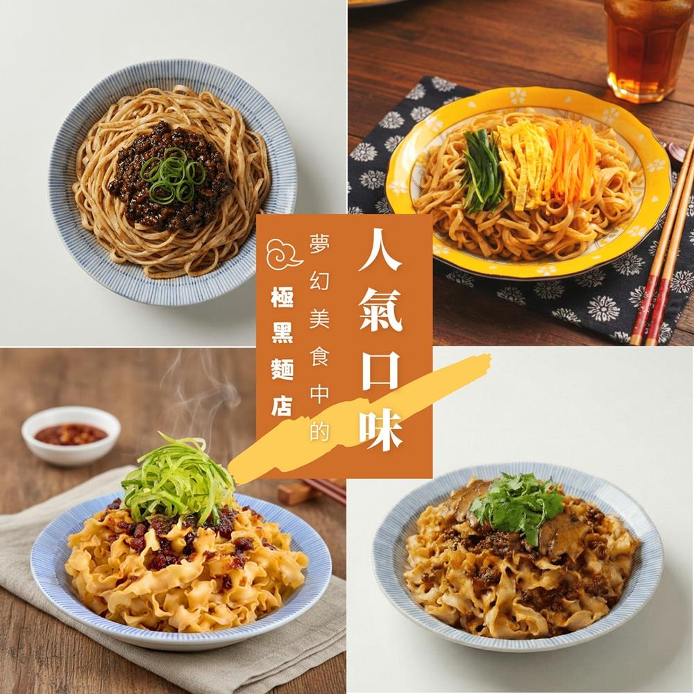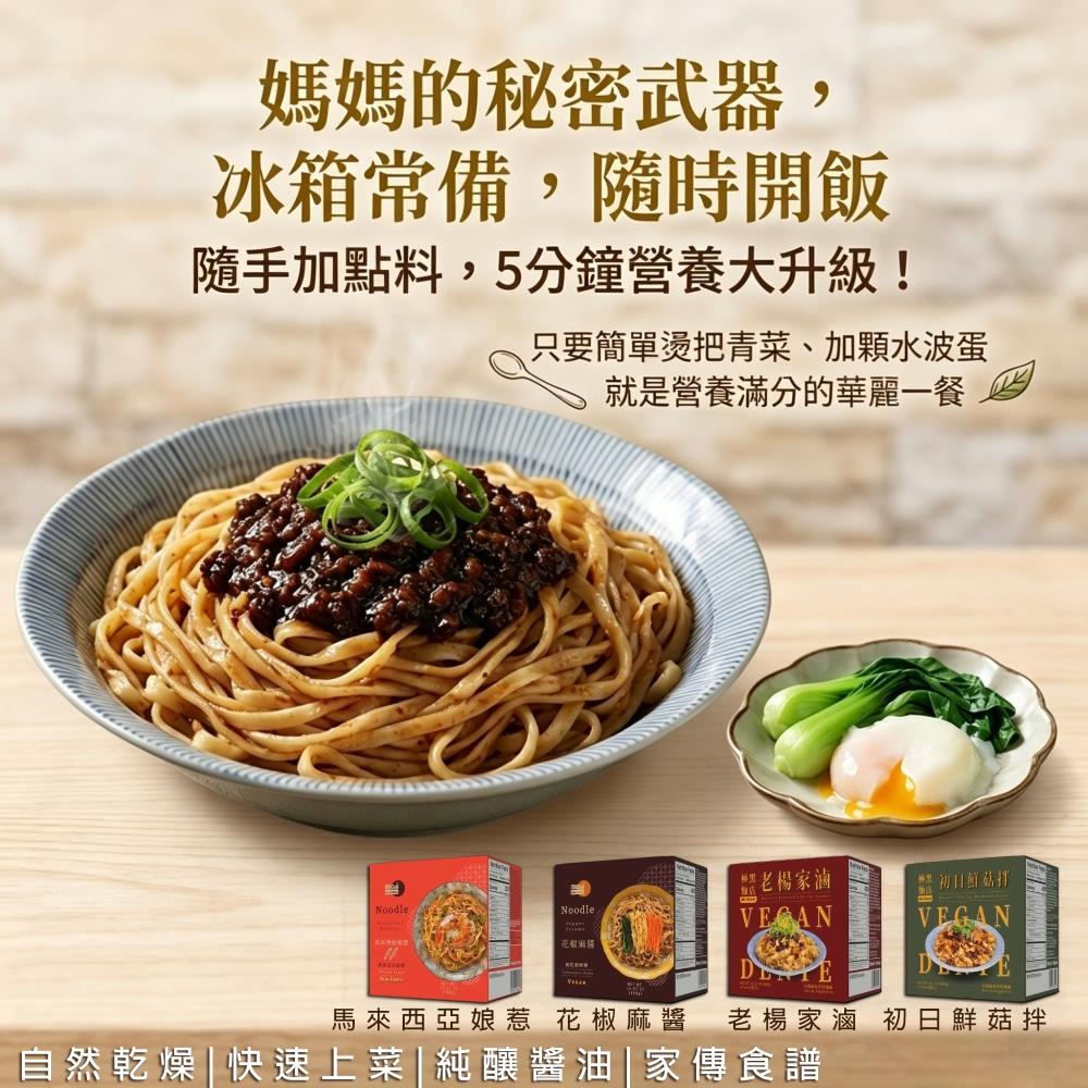 【極黑麵店】任選/花椒麻醬/馬來西亞娘惹/老楊家滷/初日鮮菇拌(4包/盒)4盒組