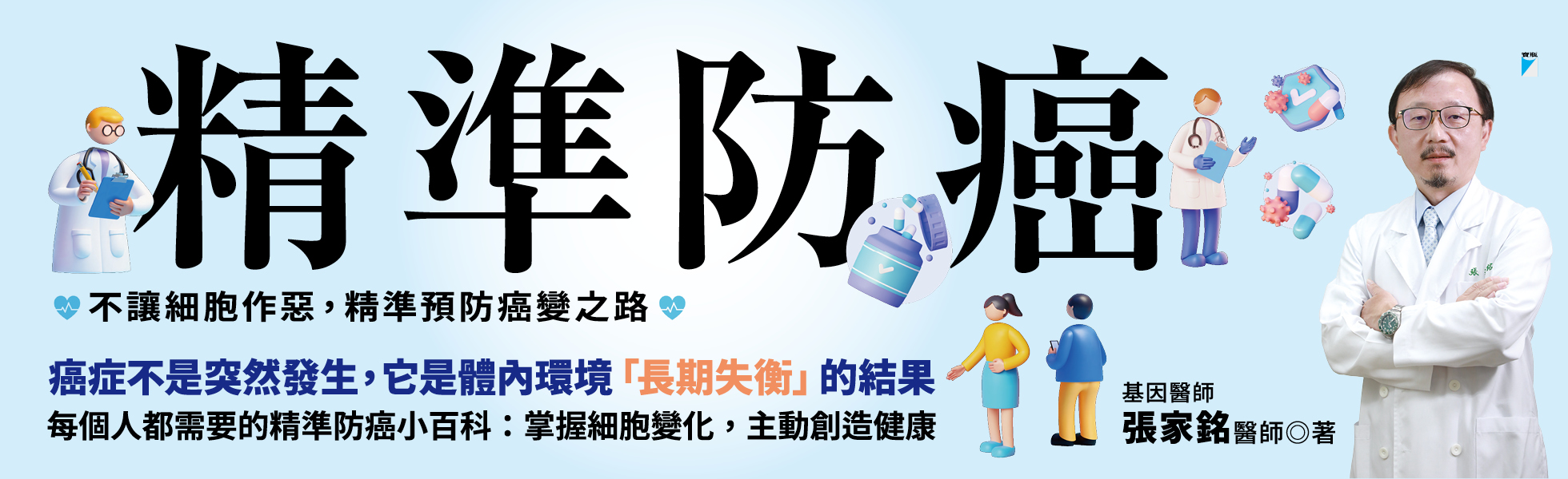 癌症不是突然發生,它是體內環境「長期失衡」的結果。作者張家銘醫師長期深耕精準醫療,他以最生活又生動的說明,從飲食到作息、癌前警訊到預後保健,並細說十五種必須了解的癌症。帶我們從了解體內環境開始,調整「源頭」、重建「平衡」,讓好細胞更強大,癌細胞無從現身。本書是每個人都需要的精準防癌小百科!──────────────────────────────────癌症不是突然發生,它是體內環境「長期失衡」的結果。──────────────────────────────────高糖、高油、高鹽,久坐、少動、熬夜……都在對身體說:「失衡、混亂、發炎。」這是癌細胞最喜歡的甜言蜜語!▍ 本書是每個人都需要的精準防癌小百科:掌握細胞變化,主動創造健康。從了解體內環境開始,調整「源頭」、重建「平衡」,讓好細胞更強大,癌細胞無從現身! 癌症發生是經過長久的無形累積,身體不會馬上反應,但它會「記帳」。你每天的飲食、作息、運動、情緒與環境,其實都轉化為免疫、代謝、能量、壓力等各種訊號,告訴細胞要「健康」或「作惡」。【沒抽過菸,怎麼也會得肺癌?】→空氣汙染、長期吸入廚房油煙,造成體內反覆發炎,而基因修復出錯,產生癌變。【鮪魚肚,不只增加三高危機?】→那圈「脂肪」,加上腸道菌相不穩定,保護功能變弱,可能成為攝護腺癌的溫床。【胃不舒服,吃點藥就沒事了?】→小心胃受苦太久,胃細胞為了另尋生路,轉而「學當腸子」,卻慢慢演變成胃癌。「基因醫師」張家銘長期深耕精準醫療。他以最生活的話語、極生動的說明,從飲食到作息、癌前警訊到預後保健,並細說十五種必須了解的癌症。讓我們如戴上放大鏡般,終於將聞之色變的癌病內幕看清楚。找到失衡的健康核心,就能精準地設計對策,根據個人體質與生活背景,選擇自己適用的方法,修正方向,遠離癌變風險。▍讀懂本書的關鍵視角:閱讀這本書的方式,是帶著自己的背景去對照,理解哪些核心需要優先調整,然後一步一步地校準,細胞會依循這個方向前進。當大家開始用這種角度看待健康,癌症便是一條可以理解、可以調整的路。這也是這本書最想傳達的:理解體質,預測反應,提前調整,讓未來的身體走在更穩定的軌道上。▍防癌關鍵點:我們選擇怎麼活,身體就選擇怎麼對我們說話。你今天所吃的每一口飯、睡的每一個小時覺、忍住的每一份壓力、打開的每一次運動App,都在對細胞下指令:「現在該發炎?還是修復?」「該打仗?還是療癒?」這是我們每一個人現在就能做的選擇。想讓身體成為更好的療癒空間,只要從下一餐吃得營養、下一次早睡、下一次深呼吸開始。因為真正的醫學除了治病,更是要讓身體站在我們這一邊。