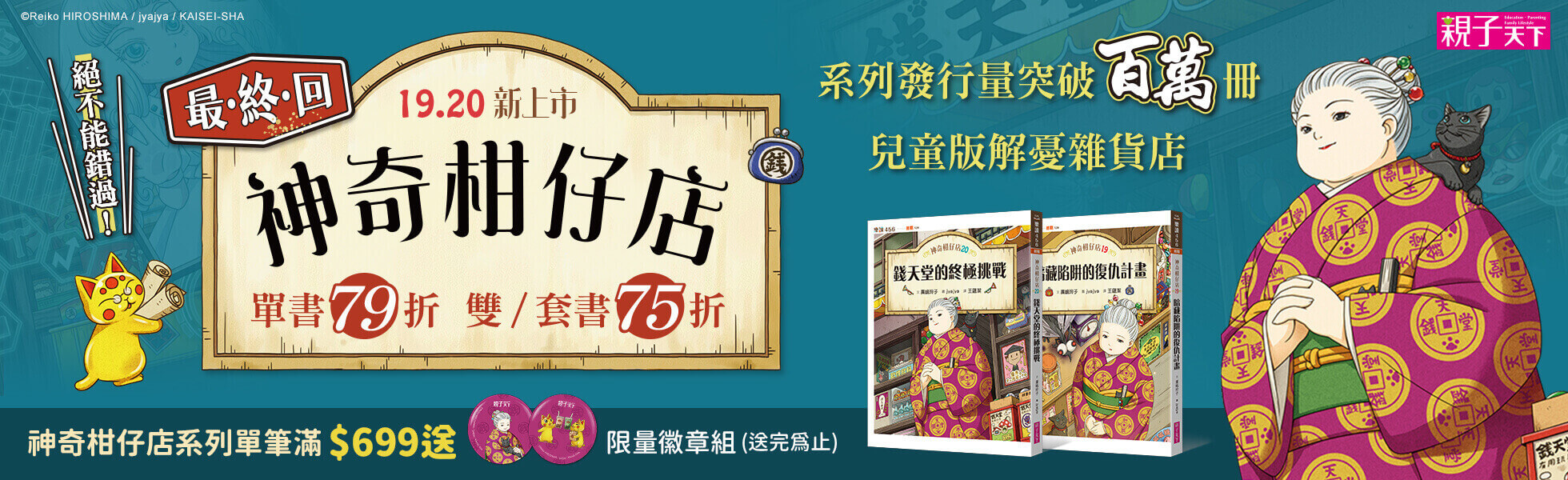 兒童版解憂雜貨店	全系列發行量突破100萬冊	蟬聯各大通路百大暢銷書、日本小學生最愛百大童書		擁有強大科學知識的六條教授傾盡全力打造出全新的APP,	替人們消愁解憂,因此使得錢天堂面臨歇業危機!	六條教授的科技對上紅子老闆娘的魔法,究竟誰能勝出?	神奇柑仔店精采大結局與即將開展的全新系列,	身為忠實粉絲的你,千萬不能錯過!		※套書首刷限量贈送「錢天堂幸運隨身袋」!			Tey Cheng FB「小學生都看什麼書」社團版主|李家雯(海蒂) 諮商心理師|	李貞慧 國中教師暨兒少讀物譯者|林怡辰 資深國小教師&作家|	胡致莉 廣播金鐘獎「欖仁媽媽說故事」Podcast製作人|高詩佳 語文教育書籍暢銷作家|	彭遠芬 教育部閱讀推手|彭冠綸 館長小編|葉惠貞 清華大學附小資深教師|	廖淑霞 臺北市私立再興小學研究教師|蔡依橙 素養教育工作坊核心講師|	蔡孟耘(小壁虎老師) 宜蘭縣竹林國小教師|蔡佳璇 臨床心理師.哇賽心理學執行長|	魏瑋志(澤爸) 親職教育講師|顏志豪 兒童文學作家		一致好評推薦					◎套書首刷限量贈錢天堂幸運隨身袋	*尺寸:9x20公分	*材質:塑膠	*全彩印刷,限量收藏!			◎得獎紀錄	★2023~2024日本全國學校圖書館協議會選書	★2024各大通路兒童文學類百大暢銷系列書	★2024好書大家讀年度最佳讀物	★連續4年入選日本全國小學生最愛百大童書	★系列發行量逾百萬本、風靡臺日韓三地小學生	★入選文化部中小學生讀物選介系列續集			◎詳細內容	1.《神奇柑仔店17:消痛巧克力的危機》	六條教授在上次對決失敗後,決定尋找更多合作對象,	準備積極展開新的錢天堂消滅計畫。	然而,這次教授尋覓到的合作夥伴,	無論是能毀滅一切的謎樣少年,或是眼力絕佳的王牌星探,	在接近錢天堂的行動中都遭到重重阻礙,甚至發生車禍。這究竟是怎麼回事?	是有神祕人在暗中守護錢天堂嗎?六條教授的新計畫能否成功?	而紅子老闆娘的頭號勁敵「怪童」,在這個新計畫中又扮演著什麼角色呢?		2.《神奇柑仔店18:紅子與錢天堂的起點》	金色招財貓們在研發新產品時遇到了瓶頸,	於是決定從錢天堂過去的商品目錄中找尋靈感。	像是在沒有相機的時期,為追星族保存偶像身影的臨摹柿;	在無法視訊的年代,方便人們見到遠方親友的夢境糖,	都是紅子為了不同年代的客人發明的神奇商品。	想知道這些零食是如何發明的嗎?	紅子老闆娘又是從何時開始經營這間神奇柑仔店的呢?	身為忠實粉絲的你,快一起來回顧紅子與錢天堂的起點吧!		3.《神奇柑仔店19:暗藏陷阱的復仇計畫》	六條教授為了打擊錢天堂,曾經研發出冒牌零食、在網路上散布謠言,	甚至在研究所設下機關,企圖抓住紅子老闆娘,	然而,這些計畫全都失敗了!	這一次,他決定傾盡畢生心力,打造出一款神奇的應用程式「小天使次夢」,作為他的復仇工具。	這款應用程式有什麼特殊功能?	其中又暗藏了什麼樣的陷阱,會對紅子老闆娘和錢天堂造成嚴重的威脅?		4.《神奇柑仔店20:錢天堂的終極挑戰》	自從六條教授開發出「小天使次夢」APP後,馬上廣受大眾喜愛。	小天使次夢不僅能隨傳隨到,還能發揮人工智慧,	替使用者解決各種煩惱和困難,成為許多人的虛擬朋友,甚至讓人產生了「次夢依賴症」。	這也導致錢天堂的生意一落千丈,面臨倒閉危機。	紅子老闆娘該如何應對這樣的終極挑戰?	六條教授的AI科技與紅子的魔法零食,何者更能幫助人們實現願望呢?		◎系列特色	特色1.同理每個人的煩惱與壓力:七個短篇故事呈現各年齡主角的煩惱,讓孩子同理每個人的情緒壓力。		特色2.解憂抒壓的出口:透過故事中遇見的煩惱發生、處理與解決的過程,找到不一樣的抒壓解憂方法。		特色3.解決問題的能力:故事貼近生活,容易產生共感,透過故事思考問題解決的方法。		特色4.想像與創造力:跟著主角認識神奇作用的點心或玩具,奇幻與奇遇的故事,想像力與趣味滿點!		◎本系列共23冊	1.神奇柑仔店1:帶來幸福的錢天堂	2.神奇柑仔店2:我不想吃音樂果	3.神奇柑仔店3:誰需要除皺酸梅	4.神奇柑仔店4:給我變強的狼饅頭	5.神奇柑仔店5:我不要帥哥面具!	6.神奇柑仔店6:忍耐鉛筆大逆襲	7. 神奇柑仔店7:糟糕!我吃了款待梨	8. 神奇柑仔店8:SOS!救急媽媽面具	9. 神奇柑仔店9:消除痠痛地藏饅頭	10. 神奇柑仔店10:順風耳軟糖的報應	11.神奇柑仔店11:失控的最強驅蟲香水	12.神奇柑仔店12:神祕人與駱駝輕鬆符	13.神奇柑仔店13:合身花生與神祕實驗	14.神奇柑仔店14:炫耀餅乾的副作用	15.神奇柑仔店15:冒牌的長髮公主餅乾	16.神奇柑仔店16:忍者薑片的正面對決	17.歡迎光臨錢天堂:神奇柑仔店大圖鑑	18.神奇柑仔店番外篇:神祕可疑的天獄園	19.神奇柑仔店17:消痛巧克力的危機	20.神奇柑仔店18:紅子與錢天堂的起點	21.神奇柑仔店系列:招財貓的每一天	22.神奇柑仔店19:暗藏陷阱的復仇計畫	23.神奇柑仔店20:錢天堂的終極挑戰			◎本書關鍵字:神奇柑仔店、紅子、廣嶋玲子、問題解決、解憂雜貨店	◎有注音,適合8歲以上閱讀	◎教育議題分類:家庭教育、品德、生命、資訊、多元文化、閱讀素養	◎學習領域分類:語文、社會、藝術與人文、綜合活動		【樂讀456】系列介紹	【樂讀456系列】是第一套帶領孩子衝破「閱讀之壁」的最佳讀物,提供美好的閱讀經驗,陪伴孩子在閱讀的路上一步步穩扎穩打,打通閱讀關節。		系列以好看的故事、多元的題材為國小中高年