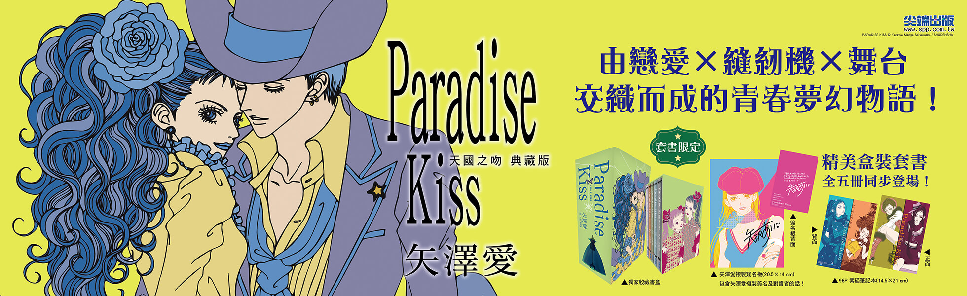 經典漫畫作家矢澤愛.浪漫之作重新推出──由 戀愛 × 縫紉機 × 舞台 交織而成的青春夢幻物語!套書限定①▸▸獨家收藏書盒×1矢澤愛精緻繪圖書盒,華麗的戀情與友情令人目不轉睛!套書限定②▸▸96P素描筆記本×1封面封底共有四種不同風格的早坂紫,陪伴你捕捉素描靈感!(尺寸:14.5×21cm)套書限定③▸▸矢澤愛複製簽名板×1包含矢澤愛複製簽名及對讀者的一句話,絕對值得收藏!(尺寸:14×20.5cm)【本書特色】✦漫畫大師矢澤愛浪漫之作,翻譯成10種語言,在全世界都大受歡迎!✦曾改編成動畫、電影的經典時尚之作,放大開本為25K,輕鬆提升閱讀體驗!✦收錄豪華彩頁,重現矢澤愛精美繪圖!【故事簡介】「明明我都知道⋯可是為什麼胸口卻怦怦地跳個不停呢?即使十二點的鐘聲敲響,也請⋯不要讓我從這場夢中醒來──」東京某升學名校高三的學生.早坂紫,即將面臨聯考而焦頭爛額之際,在往返於補習班和學校之間的路上,誤打誤撞進入了天堂!?鬧中取靜,像是迷宮般的小巷子裡有一間隱密的地下室。空氣中瀰漫著陣陣奇特的,好像是烤麵包般甜甜的香味。牆壁被塗成鮮豔的粉紅色,不時還傳出震耳欲聾的音樂。這裡有個舊吧檯和撞球桌,還有三架大型的縫紉機。這個像是祕密花園般的地方,他們叫它──Atelier(工作室)⋯在這名為「矢澤藝術學院」的舞台上,即將展開一段由「戀愛 × 縫紉機 × 舞台」交織而成的青春夢幻物語!※包裝外箱僅供運送,並非商品一部分,若運送過程中受損,將無法更換。