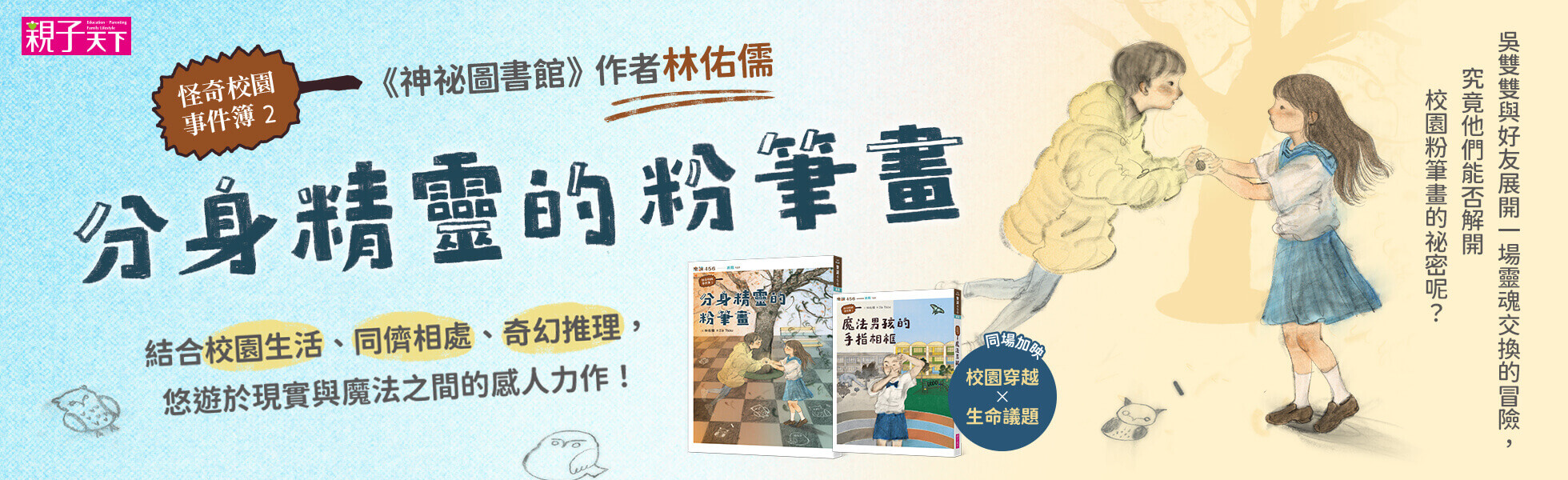 結合校園生活、奇幻推理與生命議題,資深童書作家林佑儒,悠遊於現實與魔法之間的感人力作!看似尋常的校園,卻暗藏千奇百怪的謎樣事件,快來一起推理解密,幫助透明的分身精靈找到回家之路!沈雅琪 神老師&神媽咪|林季儒 基隆市銘傳國中閱讀推動教師|「我們不只是老師」 粉絲專頁版主|張子樟 青少年小說研究專家|陳沛慈 兒童文學作家|彭遠芬 教育部閱讀推手|曾品方 教育部閱讀推手|顏志豪 兒童文學作家|羅可 國中專任輔導教師各界誠摯推薦◎詳細內容自從上一次的穿越時空之旅後,吳雙雙始終期盼著再度找回那顆開啟時空隧道的魔法果實,卻又遇見了新的怪奇事件。原來,吳雙雙在找回魔法果實的同時,無意間發現了一位徘徊在校園裡的「透明女孩」。這位透明女孩用粉筆在校園各處留下塗鴉印記,渴望有人能發現自己,卻只有吳雙雙看得見她。兩個不同世界的女孩成為朋友,甚至陰錯陽差的交換靈魂,短暫成為彼此的「分身精靈」,但也因此讓吳雙雙的好友王磊赫注意到透明女孩的存在。這位神祕的透明女孩經歷了什麼事件?為什麼會一直在校園裡飄蕩?除了與吳雙雙交換身分以外,讓她重新體驗生命的美好以外,有沒有更好的方法能讓這位透明女孩不再四處流浪,找到回家的契機呢?◎本書特色特色1.奇幻與現實交織的校園故事:本書以現代的小學校園為背景,融合校園生活、奇幻穿越、推理解謎與生命議題,帶領讀者跟著主角們在這場奇幻的時空旅行中探索過往的重要回憶。特色2.細膩描繪兒童心理與情緒感受:書中細膩描繪主角們的心理狀態、情緒反應與對話,再透過友情、親情與陪伴的力量,帶領讀者跟著書中人物一起探索並接納負面情緒,進而啟發自我成長。特色3.鮮明的人物形象與生動的場景:吳雙雙的內向與堅毅、王磊赫的聰明與勇敢、透明女孩的離奇遭遇,每個角色都鮮活立體、躍然紙上,生動的場景刻畫也讓讀者更容易產生共鳴。◎本書關鍵字:校園故事、生命教育、魔法、友誼、情緒表達、自我成長◎無注音,適合8歲以上閱讀◎教育議題分類:家庭教育、品德、生命、閱讀素養◎學習領域分類:語文、社會、藝術與人文 【樂讀456】系列介紹【樂讀456系列】是第一套帶領孩子衝破「閱讀之壁」的最佳讀物,提供美好的閱讀經驗,陪伴孩子在閱讀的路上一步步穩扎穩打,打通閱讀關節。系列以好看的故事、多元的題材為國小中高年級、國中讀者設計的延伸讀本,二到六萬字中篇的長度,能提供孩子豐富、愉快的閱讀經驗,同時顧及中年級孩子對故事的需求,鼓勵孩子進階閱讀,從「拉近自己與文字的距離」,進階到「自書中探求對自己內心及外界世界的瞭解」,並期待在書裡找到認同感。 故事選材從幽默趣味童話、偵探冒險故事,或是小大人的成長心事等等,藉由這些具有正向價值觀的故事打造一個無痛閱讀的世界,讓孩子的閱讀興趣持續在高點,同時深耕閱讀實力。【樂讀456系列】初階:兩萬到四萬字中篇故事,可按章節分斷閱讀,培養孩子的閱讀續航力V【樂讀456系列】進階:四萬到六萬字長篇故事,更細膩深刻的情節,幫助孩子發展思辨力各界好評這是一個關於記憶與魔法的故事,也是每個人童年裡曾經閃閃發亮的片段。翻開這本書,跟著主角一起探索校園裡的奇妙祕密,找回那些被時光帶走,卻從未真正消失的美好時刻。——「我們不只是老師」 粉絲專頁版主《怪奇校園事件簿2:分身精靈的粉筆畫》不只是一本奇幻小說,更是一段情感的療癒旅程。故事因主角群的參與而拼合出一幅溫暖的圖像。成長的拼圖沒有樣板,也沒有標準答案,文中的每一個人都在努力的拚成更好的自己。——林季儒 基隆市銘傳國中閱讀推動教師本書作者佑儒老師充分發揮永無止境的想像力,透過主角與幽靈相遇的奇談,巧妙的在校園故事中另創出人意料的情節布局與描繪空間,傳遞人生啟示。——張子樟 青少年小說研究專家小學階段的孩子,對生活滿是懵懂與好奇,對未來充滿忐忑與期待,藉由閱讀校園故事來激發共鳴,是最能撫慰與安定心靈的方式!這個系列不但是能讓孩子寄託情感的校園故事,更融入友情、親情,還有孩子最愛的穿越時空元素,相信孩子在閱讀的過程,絕對能獲得昂首向前的生命力量!——彭遠芬 教育部閱讀推手這本書不僅是充滿童趣的故事,更深刻探討了生命中的重要課題——如何面對家人的離去與情緒的波動。這是一部值得父母與孩子共讀、一起思考與對話的作品。——羅可 國中專任輔導教師